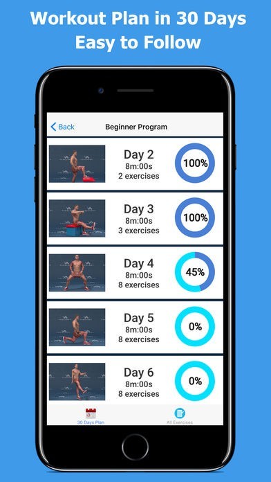 このアプリは10分程度でできる筋トレメニューを30日間組み立ててくれます。さまざまな種類のトレーニングに取り組めるので飽きずに毎日続けられます。毎日コツコツトレーニングを続けてムキムキの脚を手に入れましょう。
