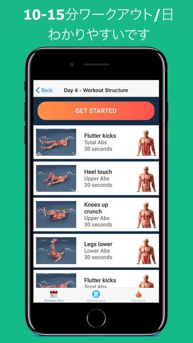 App Storeより引用30日間で6パックの腹筋を取得する方法は?