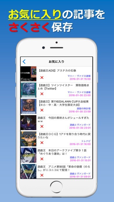 アニメやマンガとしてだけでなく、カードゲームとしても大人気の遊戯王に関する最新のニュースや面白情報をスマートフォンでチェックしたいという人にぴったりなアプリがまとめNEWS(for遊戯王)になります。このアプリでは遊戯王に関する情報を毎日更新しているので、最新ニュースをスマホで気軽にチェックすることができるようになっています。お気に入り機能を利用すれば、気になる記事は後から時間をかけて見直しすることも容易になります。
