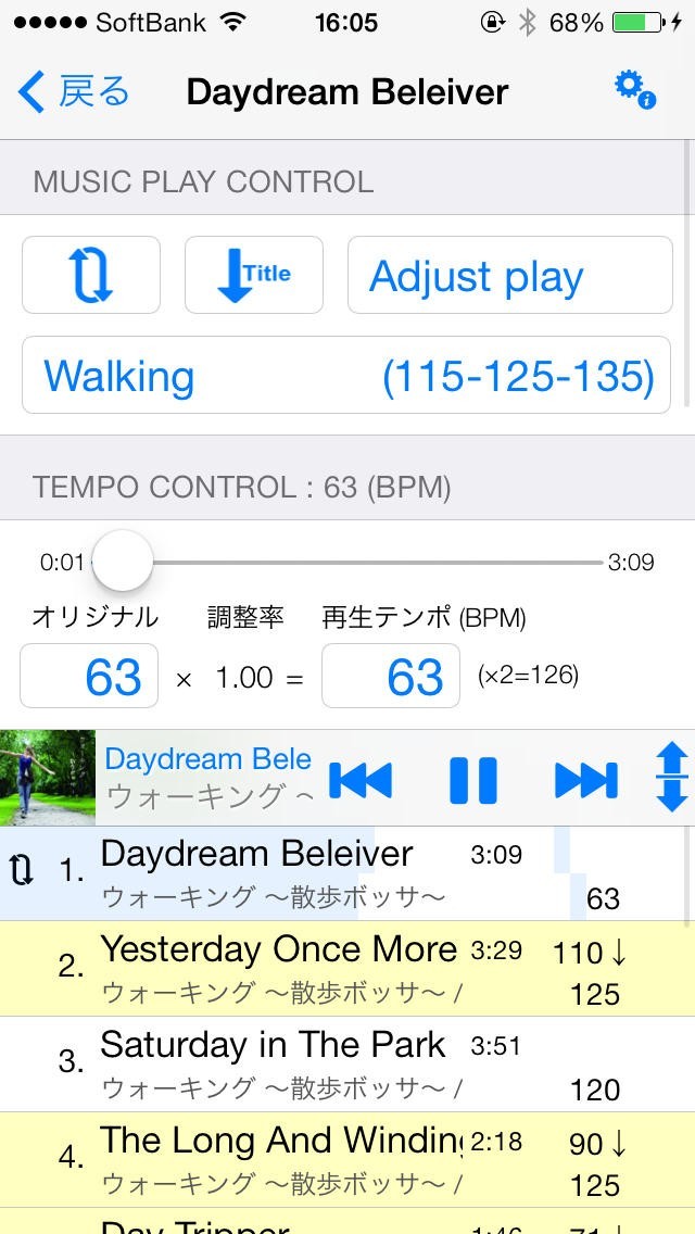 このアプリはウォーキングの最中に使うのに適しており曲を再生することが出来るだけではなく、再生テンポを設定することが出来ることから、曲に合わせて歩くことができるので、ペースを維持しやすくなりますし、歩くのがより楽しくなります。 よって、脂肪燃焼がしやすい最高のペースで歩く手助けをしてくれるので、ダイエットをしたい方にも向いています。 他には曲のテンポ順に表示してくれるので、DJをする際につなぎ合わせてすてきなMIXを作り上げたりもできます。 さらにはプレイリストから曲を順番に再生できるので最高の順番で曲を聴くことも可能です。
