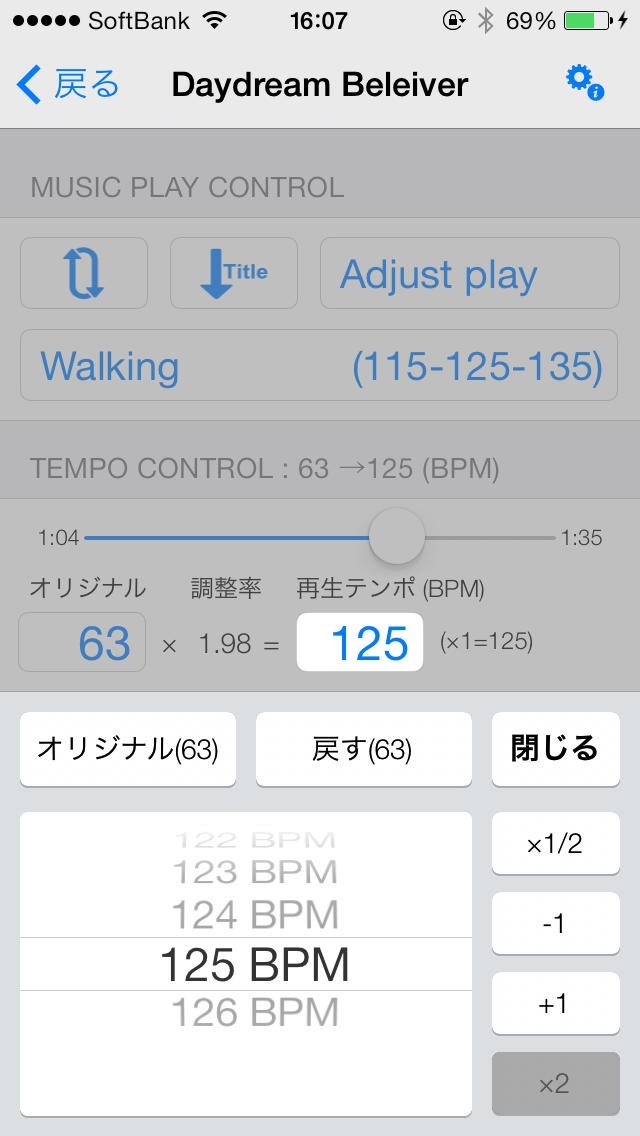 ウォーキングの最中に使うのに適しており曲を再生でき、再生テンポを設定することが出来る