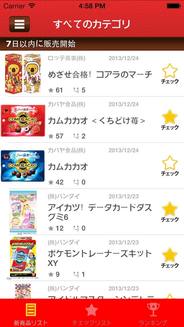 お菓子の新作や発売したての商品の情報と人気ランキングを見られる