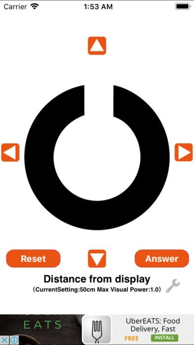 ご自分の現在の視力って知っていますか? 視力の計測は眼科や健康診断などでしか測る機会はないですよね。前に測った時より視力が落ちているかも、逆によくなっているかも。測ってみたいけどわざわざ病院に行くのも面倒だという方、このアプリでは、視力のチェックが簡単にできてしまいます。使い方は簡単で表示されている「C」の向きを答えるだけです。画面からの距離に応じて視力の測定数値が変わります。計測は0.02から2.0まで測ることができます。「C」の向きは計測する度にパターンが変わるようになっています。パターンを覚えてしまわないようにきちんと計測できるよう工夫されています。パソコンや細かい作業など、日頃目をよく使う人は、こまめにチェックしてみてはいかがでしょうか。
