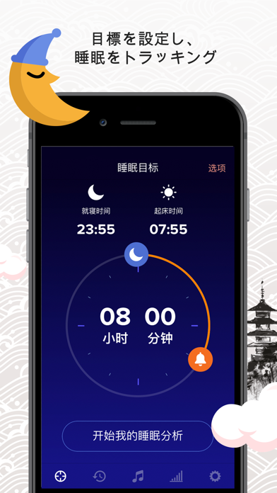 睡眠分析 は、確実に目が覚めるようなゲーム、面白いタスクによる目覚まし時計機能、睡眠質を高める睡眠トラッカー、すぐに眠りについてしまうリラックスした音楽で、クオリティ・オブ・ライフを改善させます。