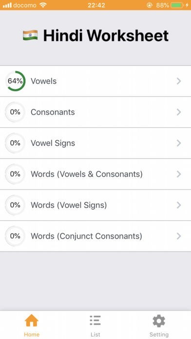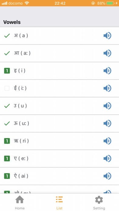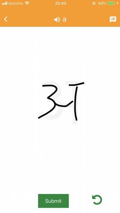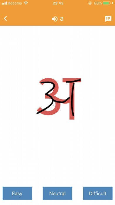 App Storeより引用このアプリでは、音声を聞きながら、手書きでヒンディー語の文字を練習することができます。