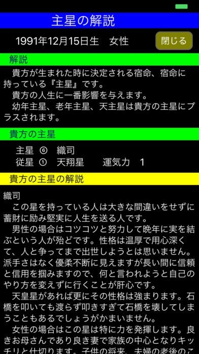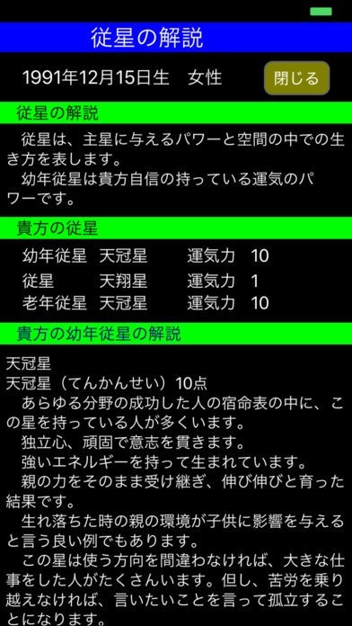 基本性格をズバリ言い当ててくれ、適職も実際に占い通りの道を歩んできました。今年の運勢が悪くなる時期も分かるので参考にします。