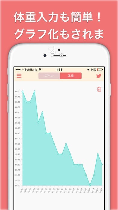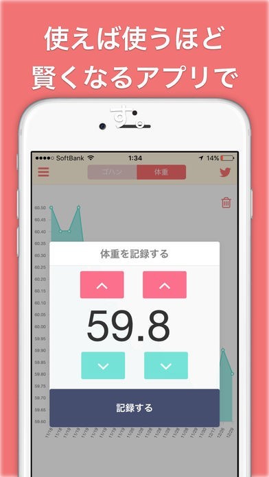 ワンタップダイエット 一日10秒で食事のカロリーと体重を記録する人気無料アプリのスクリーンショット