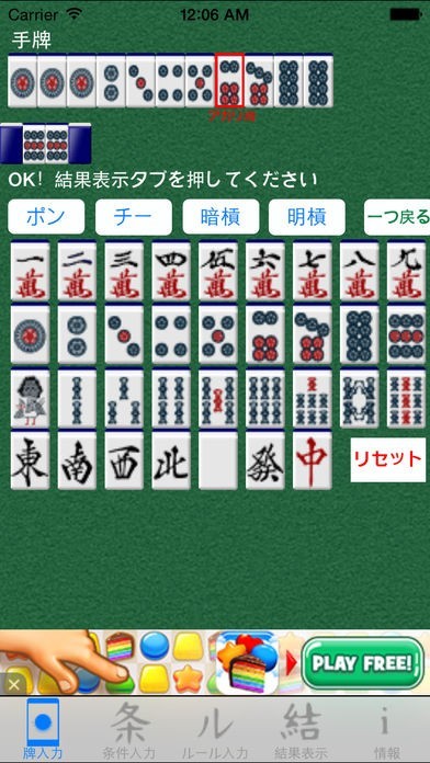 麻雀の手牌を画面タップで直接入力できるので、直感的な操作が可能