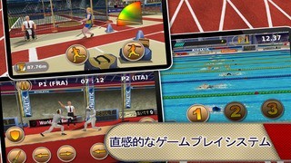 30のイベントと5つの競技大会を楽しめるスポーツゲーム「陸上競技: Athletics」 陸上をテーマにしたゲームとして、100メートル走やハンマー投げ、水泳やアーチェリーなど、幅広い競技を楽しめるのが特徴です。 画面に表示されるコントローラをタップで操作し、それぞれの競技で勝利を目指しましょう。 1人プレイはもちろんのこと、友達と2人でマルチプレイが楽しめるのもこのゲームのポイント。 GameCenterとの連携機能も用意されており、リーダーボードで世界のプレイヤーと競い合うこともできます。