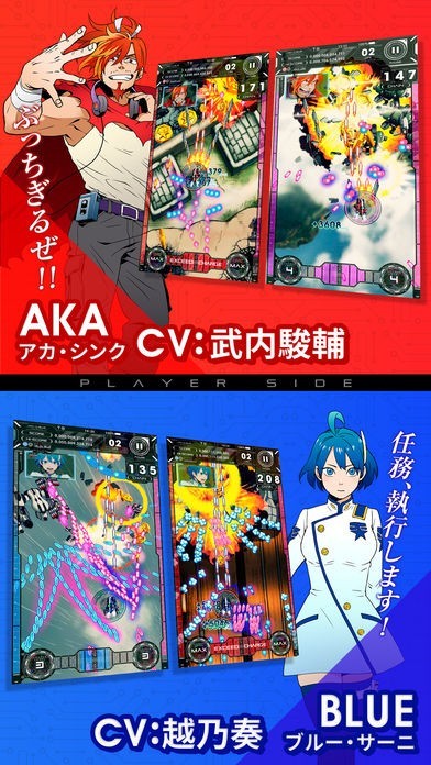スマホ史上最高のクオリティを誇る、縦スクロール型シューティングゲーム「アカとブルー」