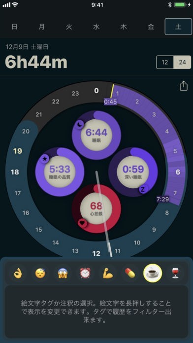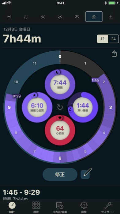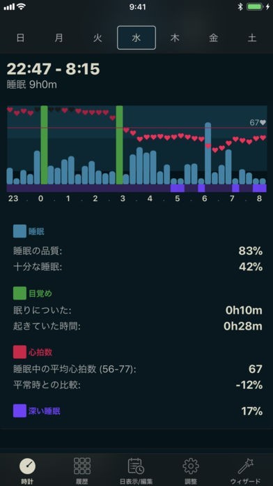 好みの表示方法で睡眠時間と深い睡眠、心拍がわかる