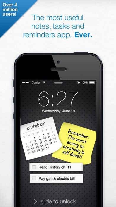 ロック画面の壁紙にクリエイティビティ溢れるメモを置いておけば忘れる心配はありません。ほかのアプリはメモを見るためにロック解除をしなければなりませんが、本アプリではメモはロック画面に貼り付けられます。また、アラーム機能も付いていますので、リマインダーとしても役に立ちます!