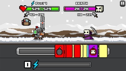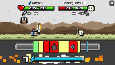 敵があらわれると横長のバーが出現しその上を水色のバーとブロックが移動します。バーとブロックが重なったところでタイミングよく画面をタップしブロックを破壊しましょう。