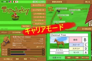 生産モードとジョッキーモード両方楽しめるシンプル競馬ゲームです。スタミナやスピードを考慮して馬を生産してレースに出場させます。レースではスタミナ切れに気をつけて、タップ操作によりスピードを上げゴールを目指します。