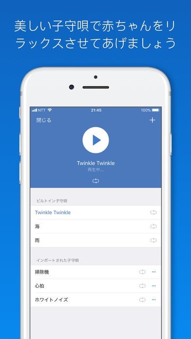 赤ちゃん側のデバイスから心地のよい音楽の子守唄を流して赤ちゃんをリラックスさせてスムーズに眠れる環境を作ってあげられます。また、睡眠の妨げになる不要な妨害をシャットアウトして快適に眠れるようにナイトモードを設定することも可能です。