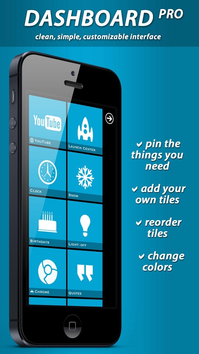 Pin just the things you need to your main dashboard screen. Reorder the elements and add your own in launch center. Change the colors to reflect your mood.