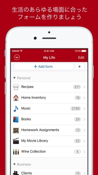 「Tap Forms Organizer 5 + Secure Database」は、スマートフォンを使って様々な情報を一つのアプリで管理することができるようになっています。