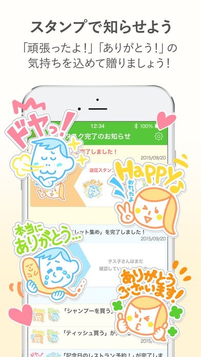 タスク完了時とそれに対する返信時にはそれぞれスタンプを選択することができます。