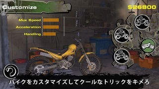 ゲームで使うバイクは自分好みにカスタマイズすることができます。色やハンドリングなどを設定し、最高のバイクを作りましょう。世界のプレイヤーとスコアを競うことも出来ます。
