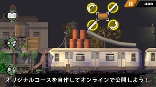 スタント、タイムアタック、チャレンジの3つのモードで遊べる他にコースを自ら作るエディタ機能があります。作ったコースはオンラインでアップロード、ダウンロードが可能です。