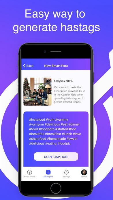App Storeより引用SmartPromo is an advanced Instagram hashtag promoting solution backed by our own Artificial Intelligence, built specifically to analyze social media content and generate relevant hashtags to boost the reach & engagement of your posts. Stop doing it manually, do it the intelligently with SmartPromo within a few touches. Just pick your desired content and our Smart system will generate trendy hashtags that will help you reach maximum user engagement, followed by lots of likes & followers.