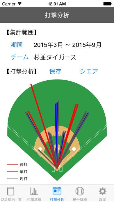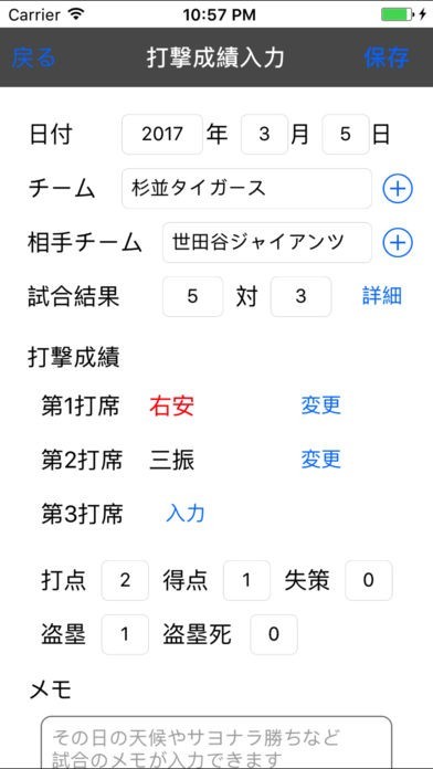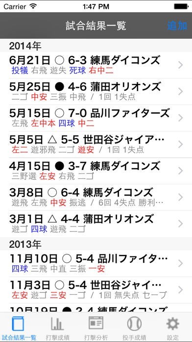 草野球の試合を記録!打撃分析画面なども充実しており実力アップにも活用できる!