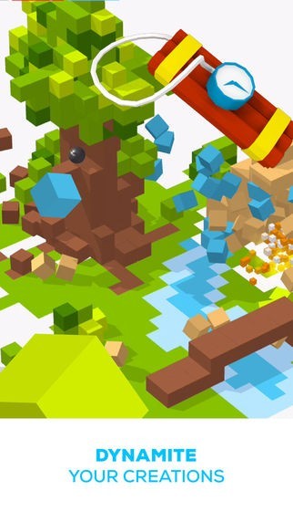 作品を鑑賞したりシェアするだけでなく、ダイナマイトや手榴弾などの武器を使って大胆に破壊することも可能となっているので、創造と破壊をまとめて楽しむことができます。