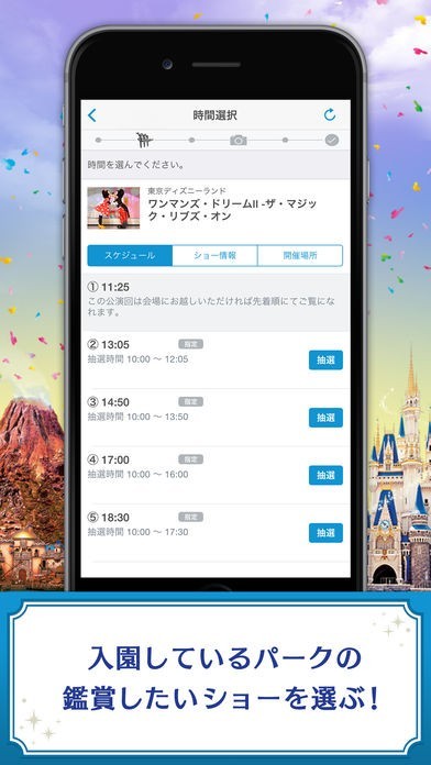 簡単便利!パーク内からいつでもショーの抽選に参加できるアプリ