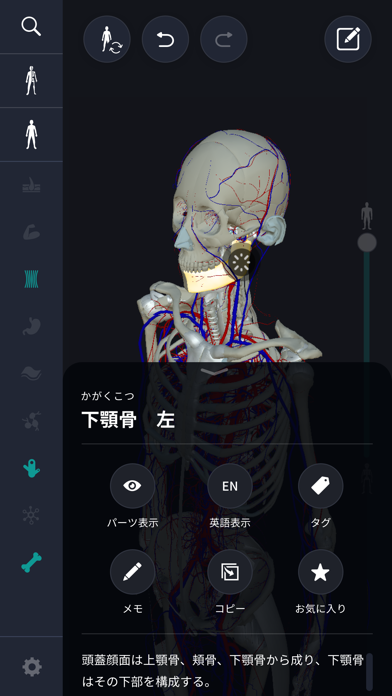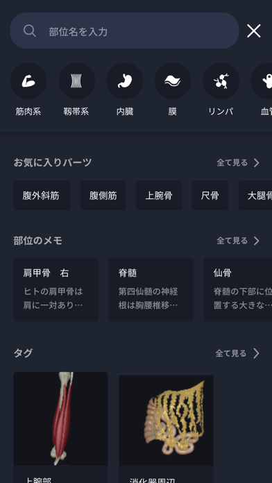 App Storeより引用teamLabBody2020は、筋肉や骨、血管、神経、靱帯に加え、内臓、脳まで網羅された人体解剖学書の決定版です。