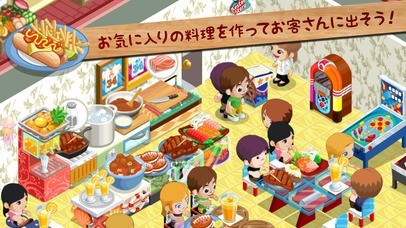 レストランに訪れるお客さんに自慢のメニューを次々提供していくことで、お客さんから代金やチップを稼ぎ、そのお金を使って新しいメニューやインテリアをさらに追加しましょう。