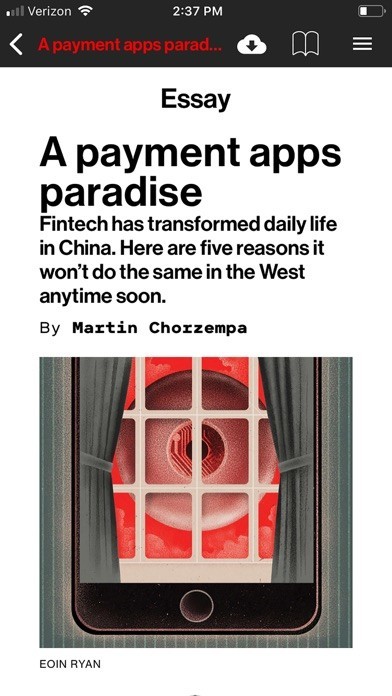 App Storeより引用The MIT Technology Review Magazine app allows readers to easily access beautiful TR magazine content on any mobile device.