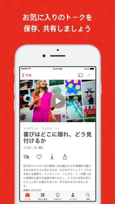TEDとは、様々なジャンルで活躍しているプロフェッショナルから、耳寄りな情報を伝えてもらえるアプリです。このアプリは、アメリカのNYへと事務局を開設している、利益目的でない有名な組織が運営しています。大掛かりの講演会を毎年開いています。イベントには、色んな分野で活躍しているスペシャリストが登場します。新しい実験や科学技術に関する、役立つプレゼンテーションが数多く実施されます。その内容とは、動画共有サービスを介して完全無料で配信されています。興味がある偉人の氏名や関心を抱いているジャンルの検索へと、英文を書き込んで行くだけで、為になる知識をきちんと掴めます。