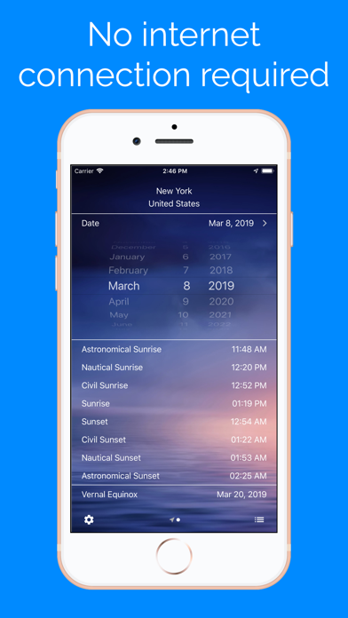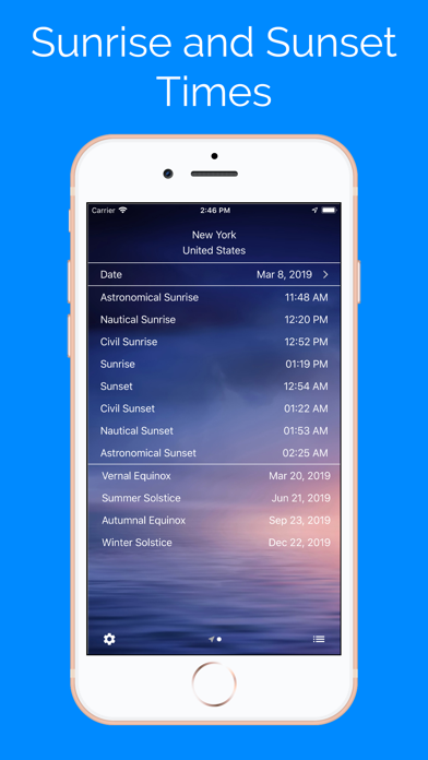 App Storeより引用A simple and modern application showing the sunrise and sunset times by the exact minute.