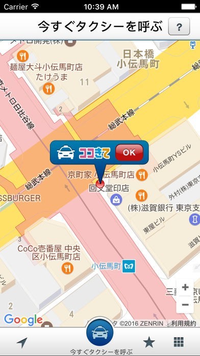 「ココきて・TAXI タクシー配車」スペック・仕様