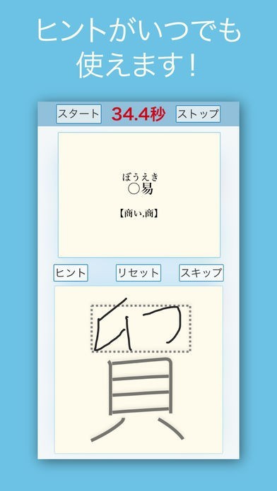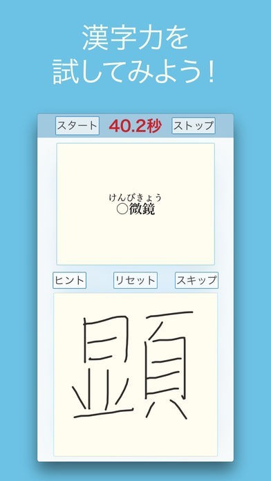 App Storeより引用「かけるかな?プロ」は手書き漢字速記ゲームです。