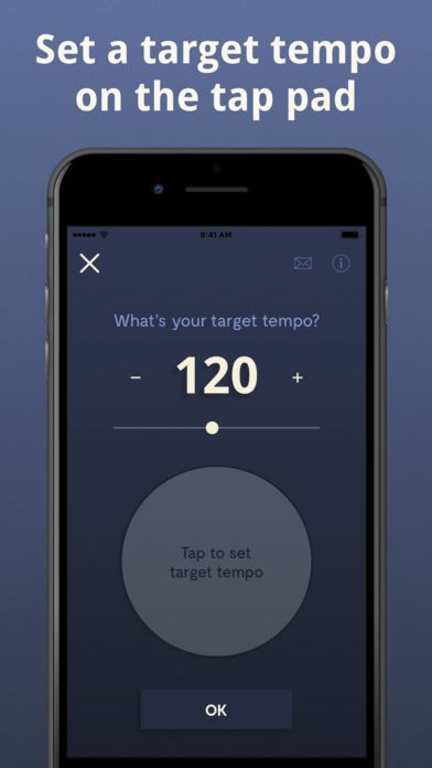 - Tap pad. A special tap pad lets you set a target tempo easily and intuitively.