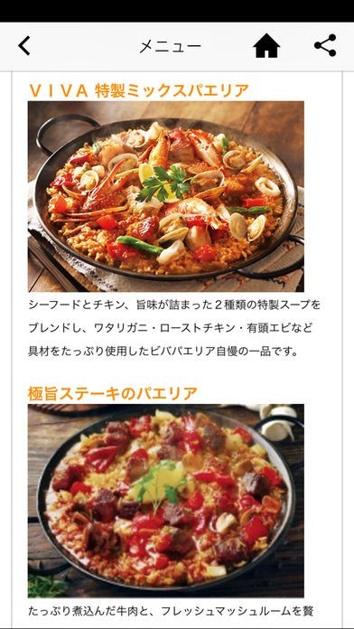 ビバパエリアのパエリアは、色鮮やかな野菜や魚介類がたくさん乗って写真映えもバッチリです。公式アプリからは公式インスタグラムに手軽にアクセスできるので、SNS映えする写真を撮りたいときの参考になります。