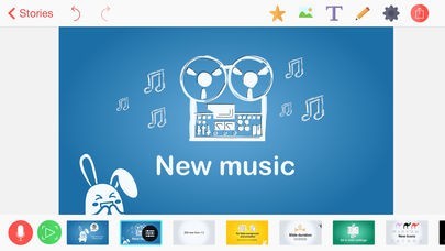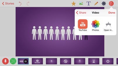 App Storeより引用From the idea to a Youtube or Facebook video in just a few minutes! Make some slides by dropping in a few vector shapes. Add some text or images. Record your voice to each slide. Choose cool background music and set the mood of your story. Your slides' content will be animated automatically!