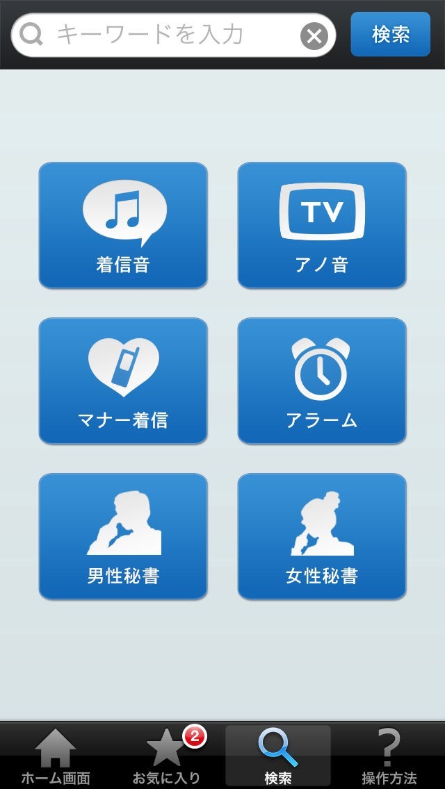 キーワードで特定の着信音を検索する事が可能なので、自分好みのBGMも簡単にピックアップ出来るようになっています。好きな効果音をメッセージや電話の着信音に設定出来るのが魅力ですね。