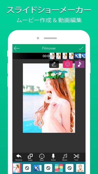 App Storeより引用Filmoverは、快適な編集オプション、フィルタ、およびその他の多くの動画効果を備えた簡単なビデオエディタです。