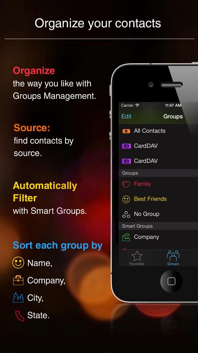 Tacts: スマートな連絡先管理、グループテキスト&Eメール、お気に入りのスクリーンショット