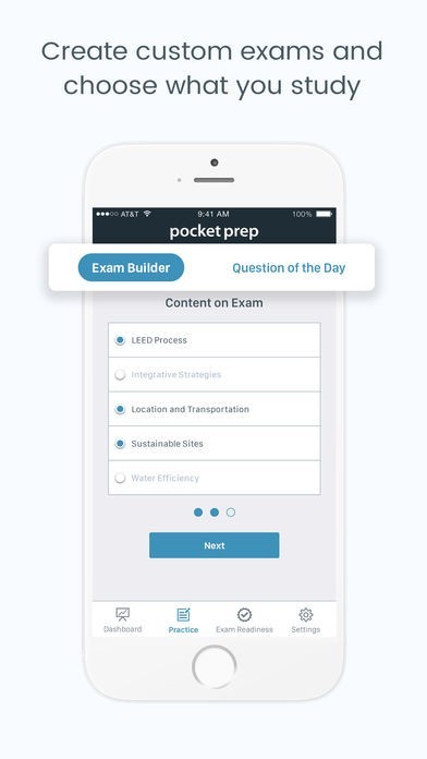 App Storeより引用Pocket Prep is your award-winning tool in mobile learning and exam preparation. Pocket Prep allows you to study anywhere, anytime, right from your mobile device. We strive to make studying more efficient by redefining how you prepare for the LEED® Green Associate exam.