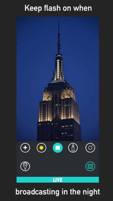 アプリではフラッシュを付けっぱなしにしておくことができます。暗いところでの撮影も、ハッキリと対象を確認することができます。夜のライブ配信や録画撮影も難なくできます。
