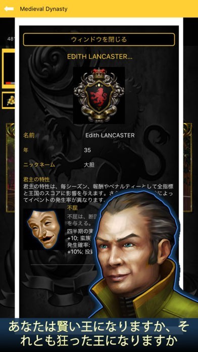 Medieval Dynastyは、476年から1492年の中世ヨーロッパを舞台とした王国統治ゲームだ。様々な特性を持った統治者が城郭で王位を占める。気の狂った王、聡明な王、数々のシーンで決断を迫られる。