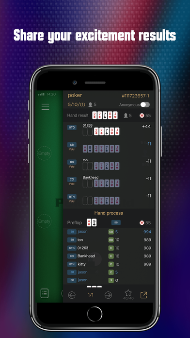 • Exhaustive results tracking every buy in & bill and share results with your mates.