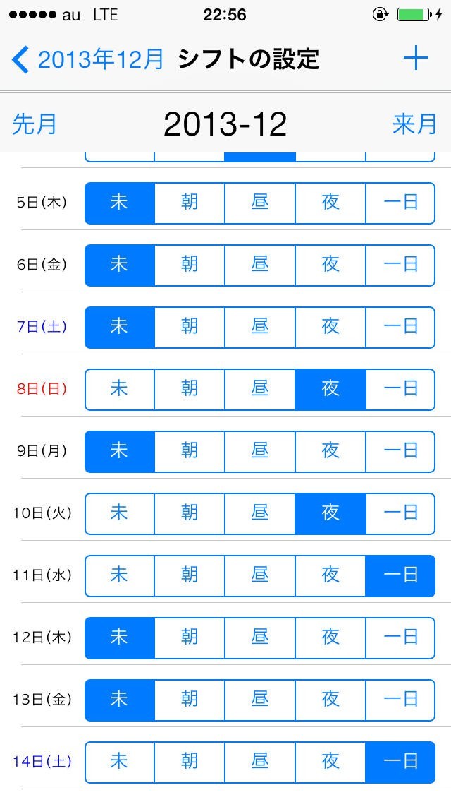 App Storeより引用手軽シフト表は、毎月のシフトをカレンダー表示し、