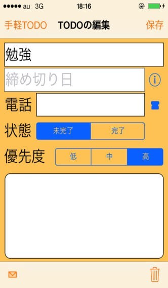 3.TODOの情報には、タイトルと電話番号と締切日と状態と優先度