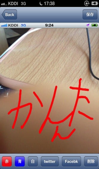 青、赤、白のボタンをタップすることによってその文字の色で落書き出来る