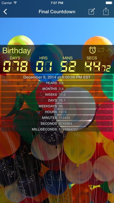 *** iOS用利用可能な新機能- ライブカスタマイズされたカウントダウンを共有!