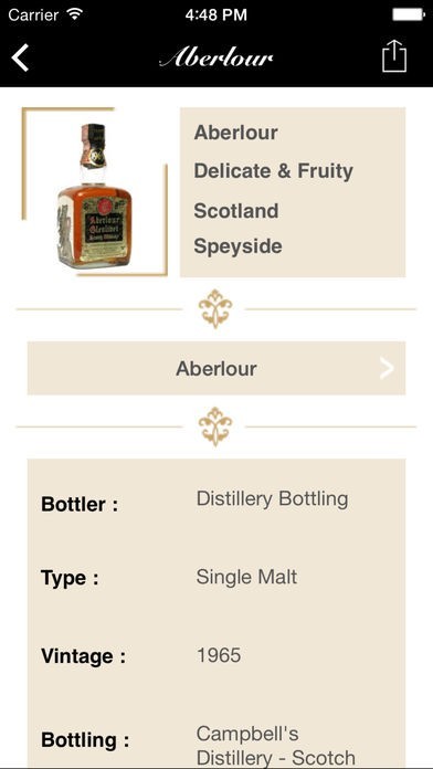 App Storeより引用The Uisge Beatha is an application-containing database of around 16000 bottles of Whiskies from Scotch, Irish, Japanese, Cananda, U.S.A, and much more around the world.
